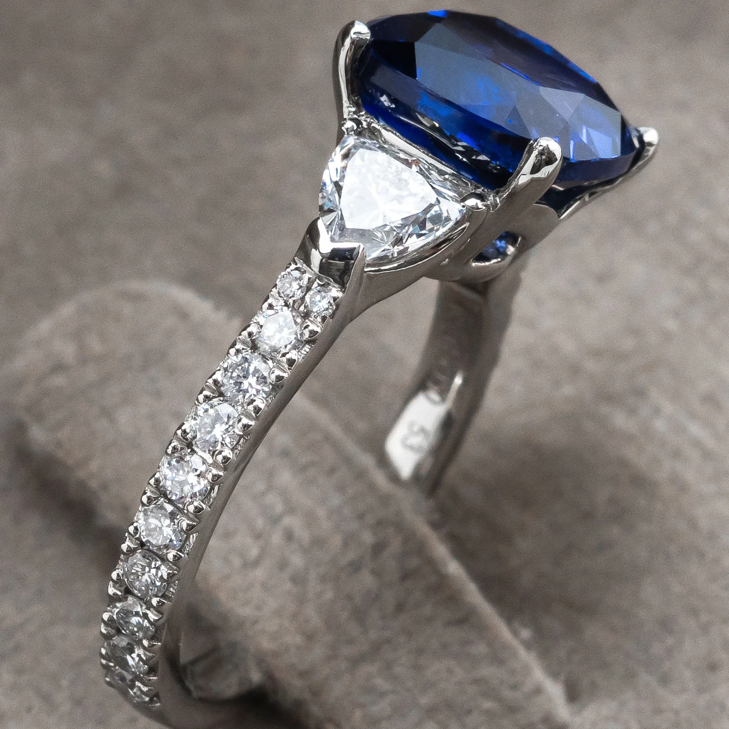 950 Platinum Ring 5.611ct Sapphire Center Stone with 1.220ct Side Stones
