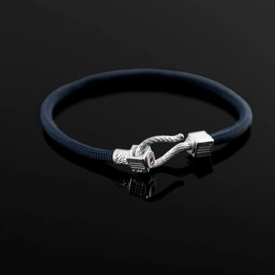 The perfect accessory to lux up your wardrobe! The design of a sailor rope in the classic color blue. The closure is 925 sterling silver with a very fine handcrafted pattern and matched with an orange topaz stone. Topaz is known for stabilizing and strengthening your emotional body.
